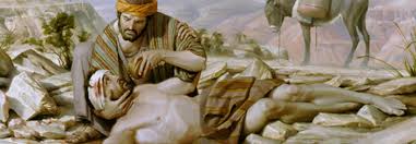 Juis daarom vertel die Here Jesus vir ons die gelykenis van die barmhartige Samaritaan. Die verhaal begin deur te vertel van ’n man wat op reis is tussen Jerigo en Jerusalem, ’n lewensgevaarlike reis! Ja, tot so onlangs as die negentiende eeu was dit nog ’n gevaarlike pad. Daarom was die gebruik eerder om in groepe te reis tussen die twee stede. Dan gebeur dit dat die man aangeval word deur rowers, beroof en nakend en sterwend agtergelaat word. Hulle beroof hom nie alleen van klere, geld en sy lewe nie. Hulle beroof hom ook van sy menswaardigheid.