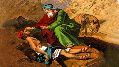 Dan skok die Here Jesus sy toehoorders as hy die verhaal verder vertel. Hy vertel hoe ’n Basterjood, ’n Samaritaan – verag deur die Jode – op die toneel verskyn en die beroofde man help. (Die Joodse toehoorders se Joodse bloed het beslis gestol by die aanhoor hiervan.) Die Samaritaan gee aan hierdie beroofde mens sy menswaardigheid terug. Hy behandel sy wonde met olie en wyn, wat kultiese elemente by die offers in die tempel is. In plaas van die olie en wyn op die altaar uit te giet, giet hy dit uit op die wonde van die beroofde man. Sy godsdiens word praktyk. Die erediens gaan straat toe.