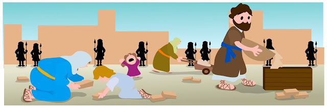 Die Israeliete het mettertyd slawe in Egipte geword en hulle is veral gebruik om stene te maak vir die bouwerk van dié land se stede. Walter Brueggemann teken in sy Living Towards a vision ’n prentjie wat iets vertel van die Israeliete se swaarkry in Egipte. Die steengroewe was volgens hom: