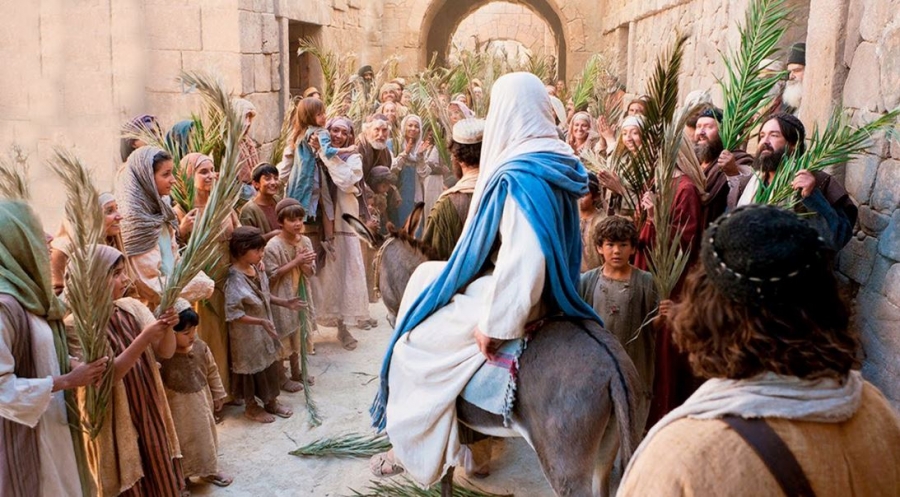 Op Palmsondag kom Jesus Jerusalem ingery op ’n donkie. Die skares gooi palmtakke en klere voor Hom uit. Hulle was onder die indruk Hy kom met die swaard die Romeine verslaan, sodat die Jode vry kon wees. Hulle het Hom as ’n politieke en militêre bevryder aangesien. In die groot Lydensweek, sou Jesus hulle egter teleurstel. Daarom het hulle ook op Goeie Vrydag geskree: “Kruisig Hom, kruisig Hom.” Hy kom wys dat hy nie politieke bevryding bring nie, maar die bevryding van sonde. Hy regeer nie met ’n swaard nie, maar met ’n kruis.