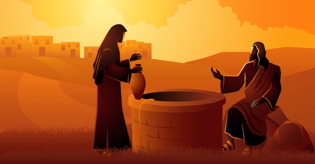 In ons gelese gedeelte van Joh 4: 1 – 42 lees ons hoedat Jesus grense oorsteek na skuurpapiermense en nuwe verhoudinge bou. Jesus en sy dissipels het weggevlug uit Judea oor die jaloesie van die Fariseërs omdat Jesus meer dissipels maak as hulle. Hulle was toe op pad Galilea toe. Hulle het ’n kortpad gevat deur die land van Samaria, waar die Samaritane gebly het. Hulle kom toe op die warmste tyd van die dag by die dorpie Sigar. Net buite die dorp rus Jesus by die put, terwyl sy dissipels dorp toe is om kos te koop.