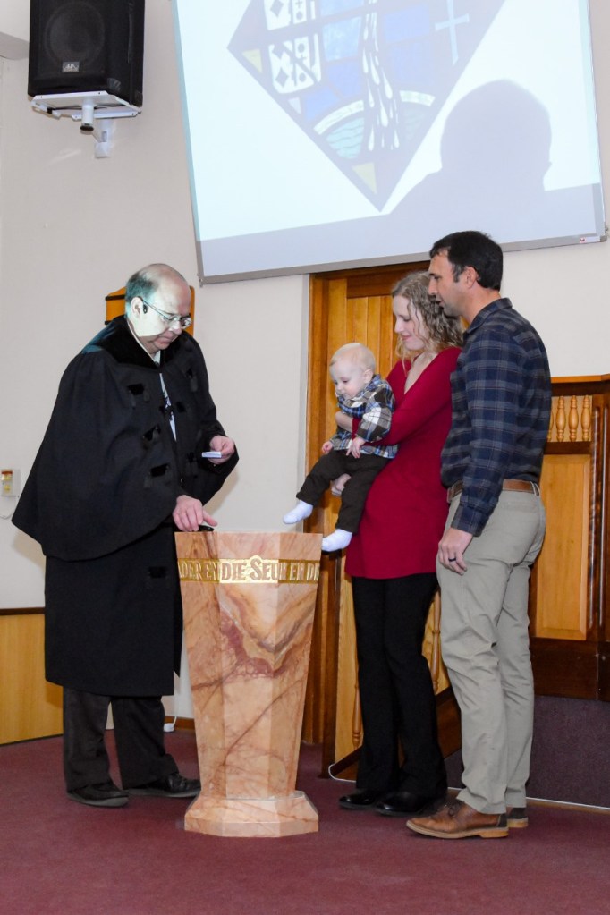 Van die ouers vra God, dat Coenie en Nandie die jong kindjie van kleins af vir die Here sal grootmaak. Dit is ’n heilige belofte wat hulle voor die Here aflê.