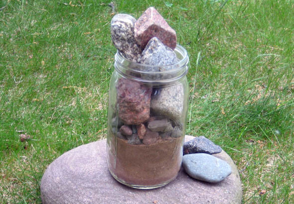 Toe hy dieselfde inhoud van klippe, gruis, sand en water gebruik en die eksperiment omkeer en eers die water, toe die sand, daarna die gruis en laastens die klippe inpak, kom amper nie die helfte van dieselfde inhoud in die fles nie. Net so, verklaar die dosent, moet ’n mens altyd in jou lewe begin met die groot klippe, die belangrikste prioriteite in jou lewe, en dan sal daar nog plek wees vir die alledaagse nietighede. Maar wie sy lewe verspil op nietighede, mis die groot en belangrike prioriteite in sy lewe.