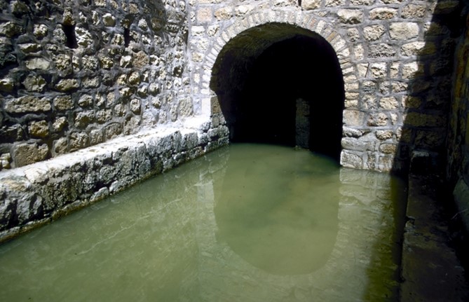 Jesus spoeg op die grond en smeer klei aan die man se oë en beveel hom om homself in die Siloambad te gaan bad. (Sien foto langsaan van die bad van Siloam) Die water kom vanaf die Gihonspruit, deur die tempelheuwel en verteenwoordig dus wat van God af kom. Daar staan dat die man presies gedoen het wat Jesus vir hom gesê het.