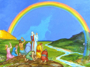 Die reënboog wat neergesit is, is ’n eensydige verbond waar die inisiatief en verantwoordelikheid net van God kom, om die aarde nie weer uit te delg met ’n sondvloed nie.