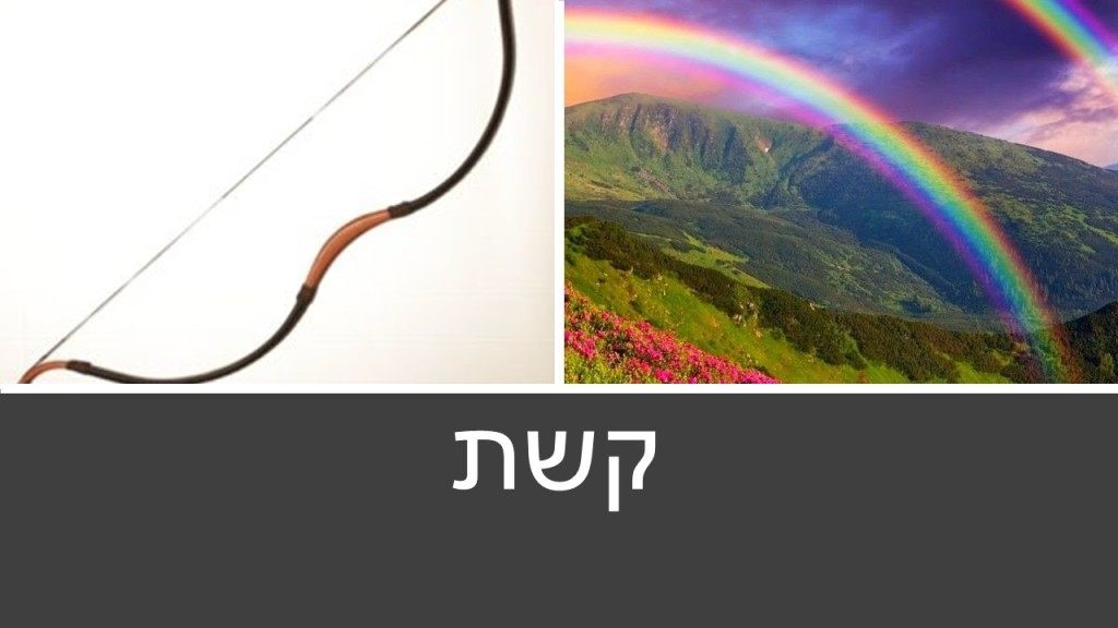 Die Hebreeuse woord qeset vir reënboog het ook ’n oorlogskonnotasie en verwys na die kryger se boog. Dieselfde Hebreeuse woord qeset kom ook voor in Ps 7: 13, Klaag 2: 4 en Hab 3: 9 – 11, waar dit verwys na die boog van die kryger wat gespan word. Daarom is die reënboog in die antieke Hebreeuse tekste ook ’n simbool van God se toorn en oordeel. God span as’t ware Sy boog om met jou in oorlog in te gaan. Met die sondvloed het God Sy qeset (Sy reënboog) gespan en met die mensdom in oorlog gegaan. Verwoestend het dit 40 dae en 40 nagte gereën en alles vernietig behalwe almal wat in die ark was. God is ook ’n toornige God, wat kwaad word oor sonde en Sy oordeel kan uitspreek oor sondaars. Ons misgis ons as ons dink God is net ’n God van liefde. God is liefde én regverdigheid. Waar God se regverdigheid vertrap word, stort God sy toorn uit oor die mens. Daarom moet ons nie van God ons speelmaatjie maak en sonde nie ernstig opneem nie. Baie mense dink God is net liefde, geen oordeel nie. Dikwels glo ons dit is God se werk om te vergewe. Maar dan dink ons naïef oor God. God straf ook sonde. God straf die sonde van die enkeling en ook die sonde van ’n volk of van die mensdom. Daarom moet ons versigtig voor God lewe.