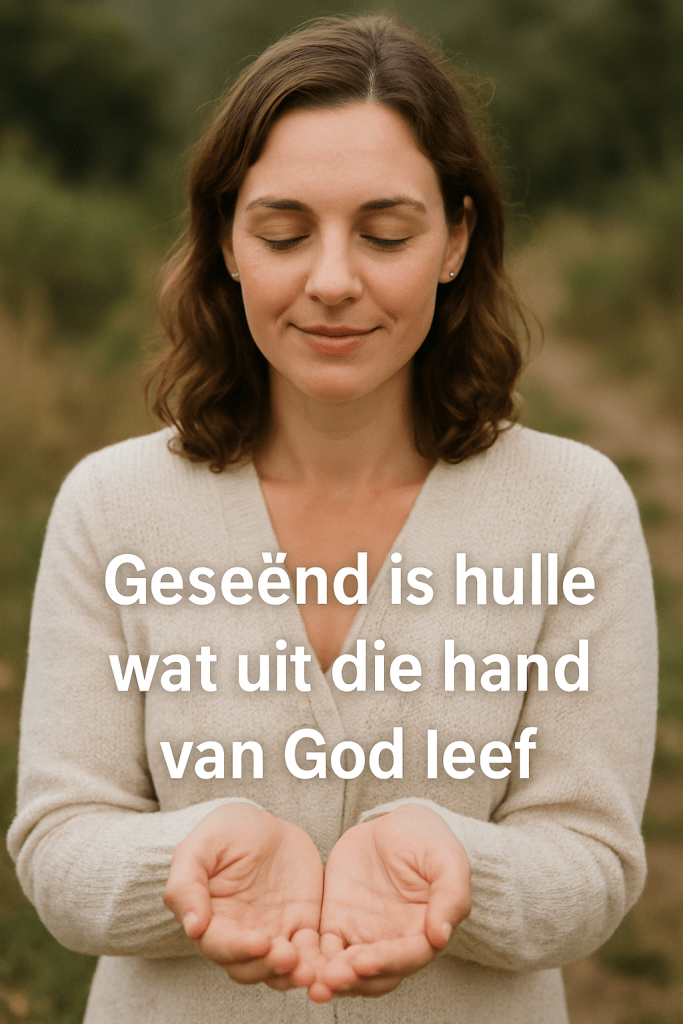 Dan lees ons hierdie vreemde woorde in Mat 5: 3, wat lui: “Geseënd is die wat weet hoe afhanklik hulle van God is, want aan hulle behoort die Koninkryk van die hemel.” Vreemde woorde! Maar agter die woorde moet ons die Here Jesus Christus sien staan. ’n Geseënde lewe begin die dag as ’n mens besef dat jy God nodig het en nie sonder Hom kan leef nie. Hierdie behoefte of afhanklikheid is nie iets wat na ’n tyd oorgaan nie, maar met die verloop van tyd eerder sterker word.
