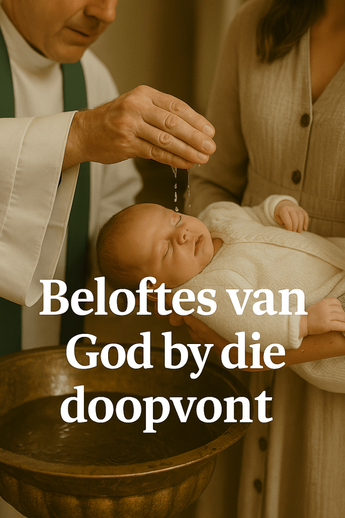 Maar in die liturgiese ruimte staan ook die doopvont, wat die vaste teken en sekerheid van God simboliseer. Al word ons ontrou, God word nooit ontrou nie. God hou by Sy belofte van geslag tot geslag. God is nooit ’n beloftebreker nie. Maar dit herinner ons ook daaraan dat, selfs al breek mense hulle beloftes, God altyd getrou bly aan Sy beloftes. In 2 Timoteus 2:13 staan die volgende: “As ons ontrou is, Hy bly getrou, want Hy kan Homself nie verloën nie.”