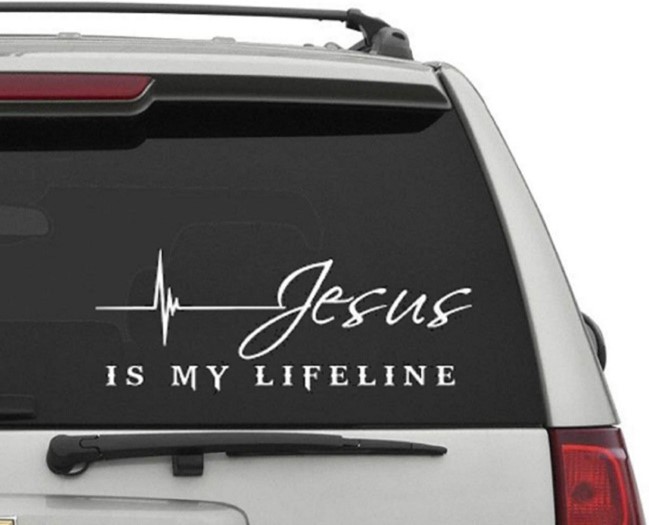Dikwels sien jy plakkers met teksverse of kruise op mense se voertuie.
